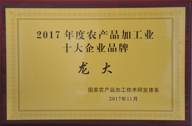 龍大獲評2017年度農產品加工業十大品牌企業